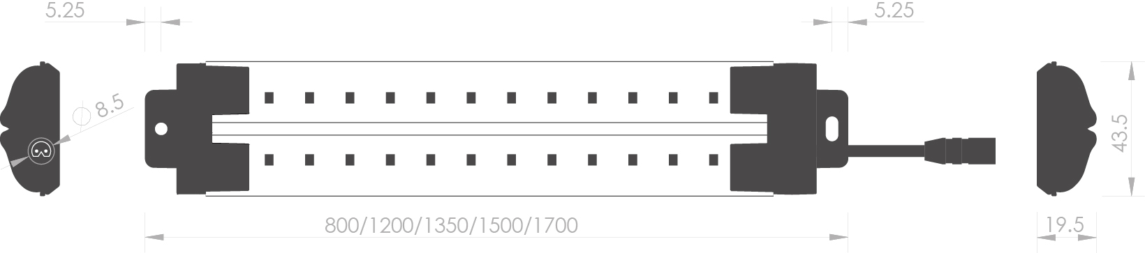 The centrally positioned RFM–VC door rail lighting is a combination of RFM–VL and RFM–VR. A single installation step on the centre rail gives you double the light output.